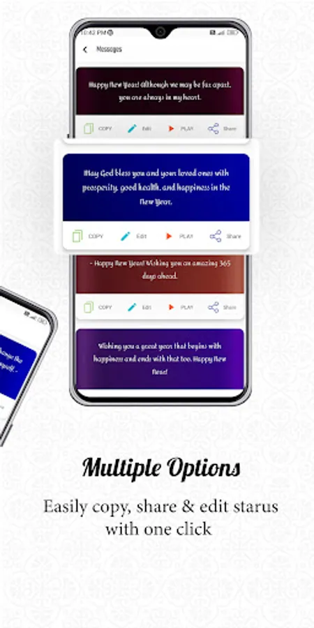 You can easily create New Year Wishes & Greetings with change font, status change, text size and background change.