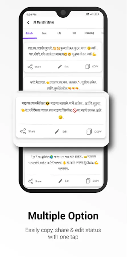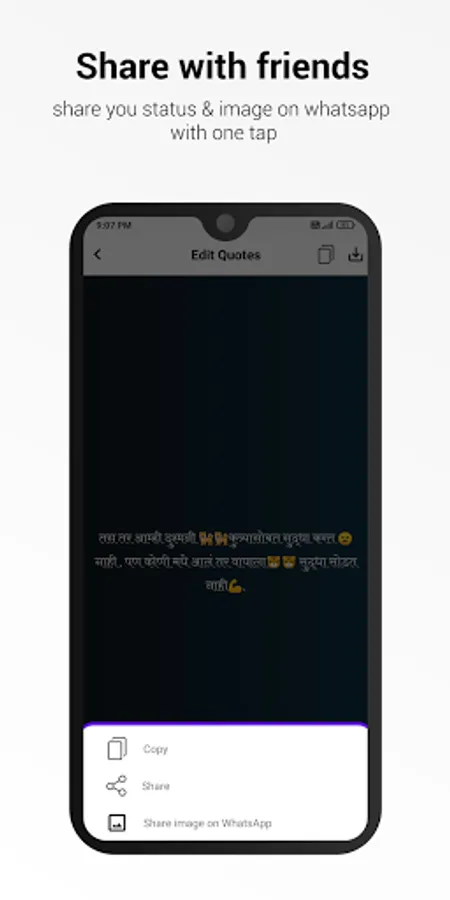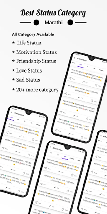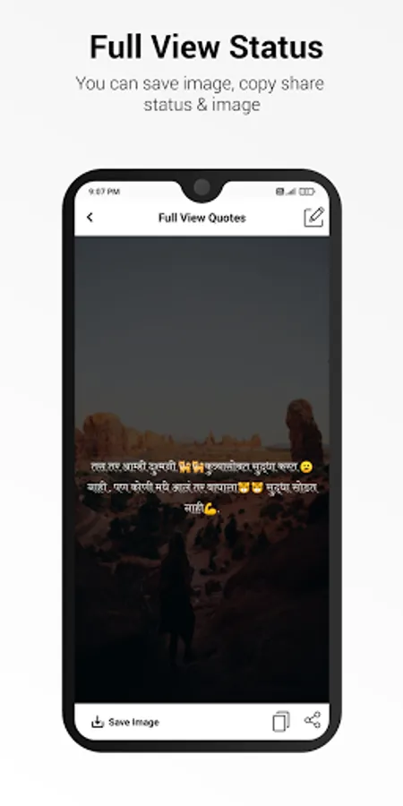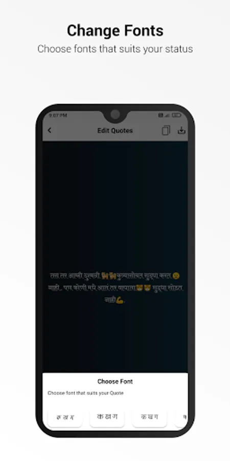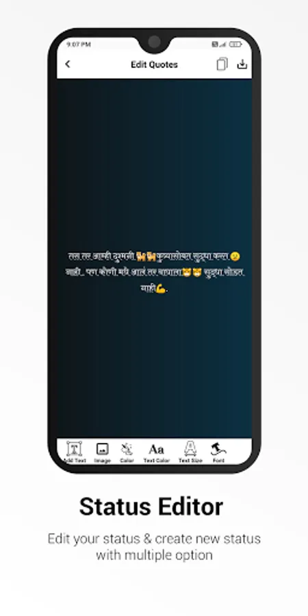 You can easily create new Marathi Quotes, Shayari & Status with change font, status change, text size and background change.