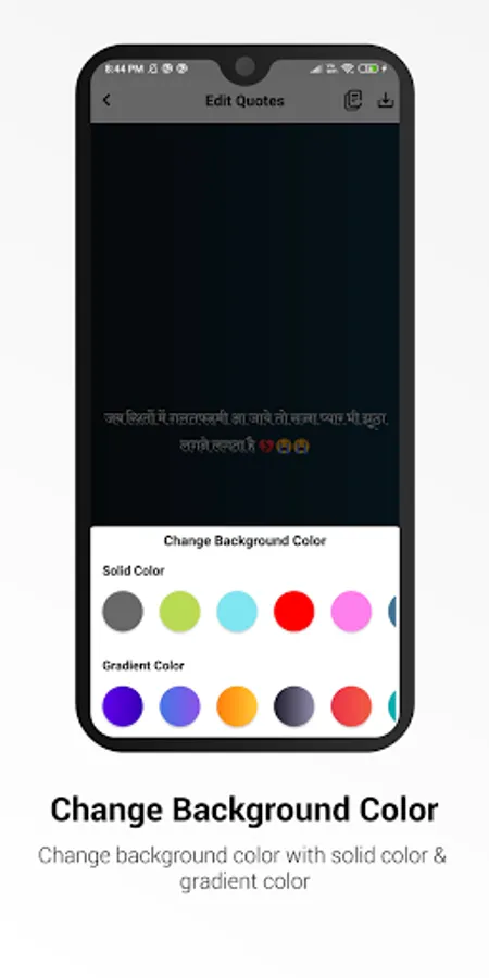 You can create your own status, quotes or Shayari with multiple stylish options like set background image using camera or gallery and also use predefined background images, change the font, text size, text colour & more.