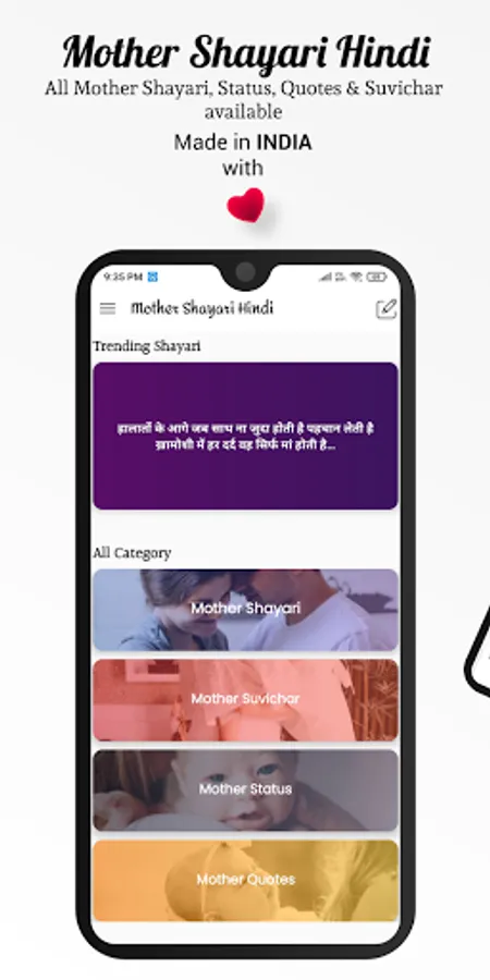 Latest Mother Shayari App with Nice and Attractive design. you can use this app online or offline. weekly new माँ स्टेटस updated.