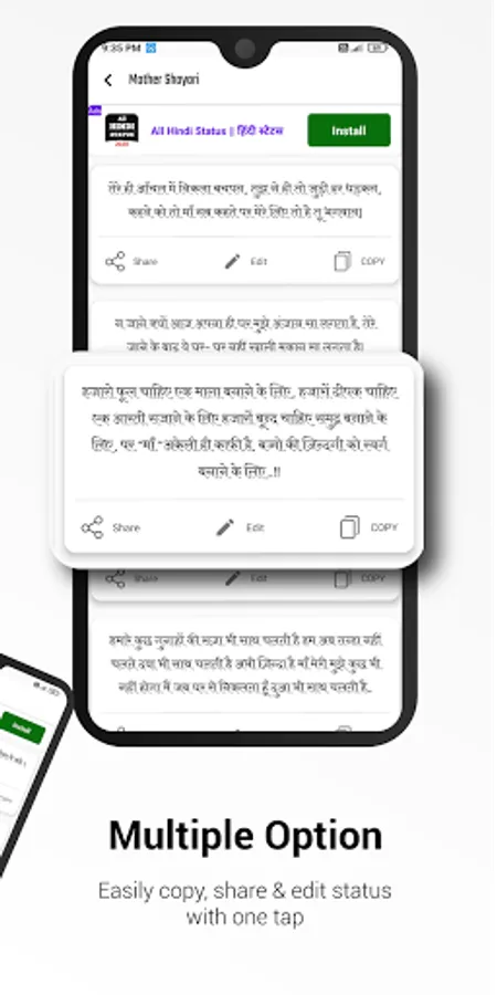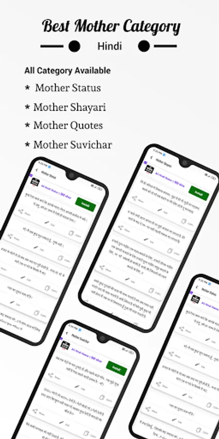 You can easily create new Mother Quotes, Shayari & Status with change font, status change, text size and background change.