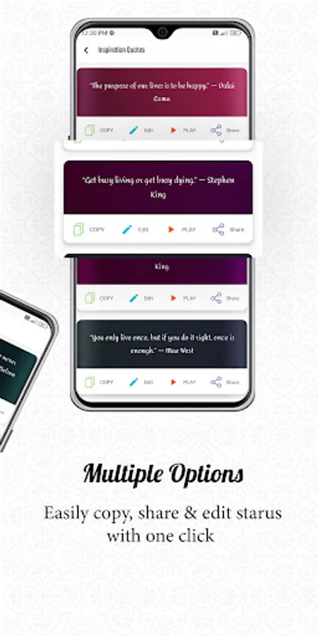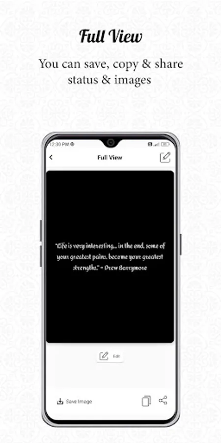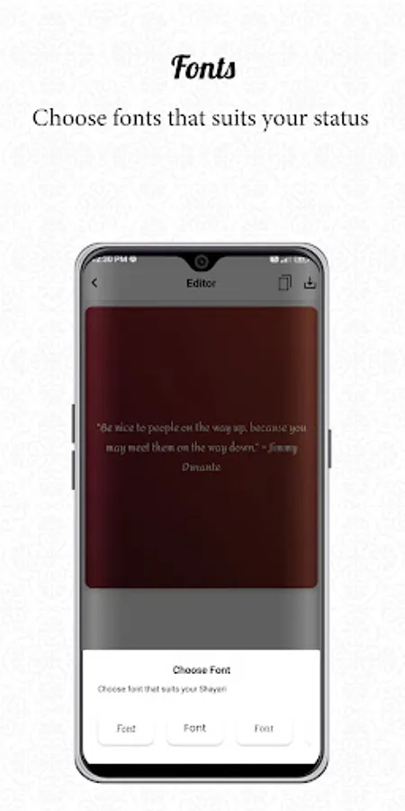 You can easily create new life and inspirational quotes with change font, status change, text size, and background change.