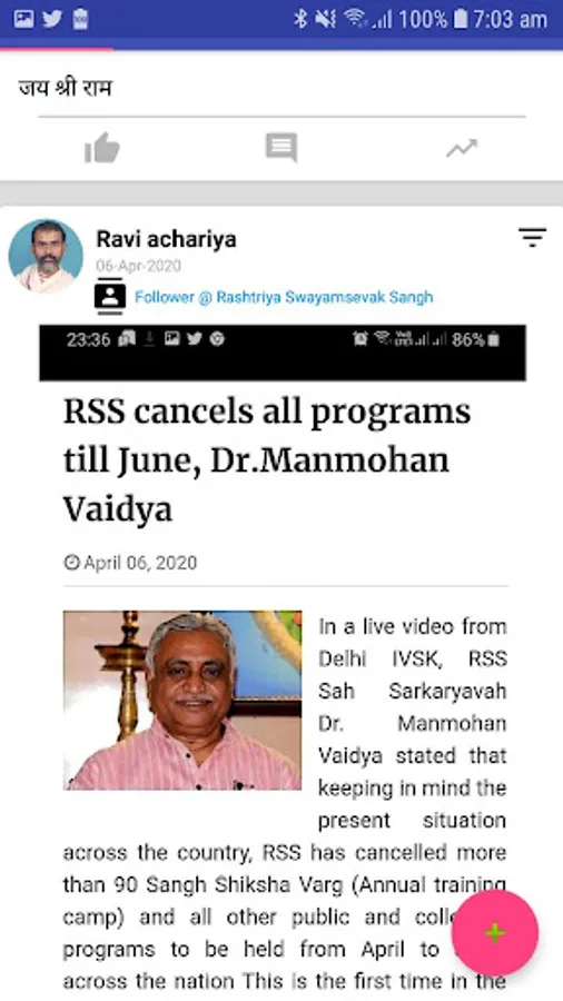 A unique phenomenon in the history of Bharat in the twentieth century is the birth and unceasing growth of Rashtriya Swayamsevak Sangh (RSS). The Sangh’s sphere of influence has been spreading far and wide, not only inside Bharat but also abroad, like the radiance of a many splendored diamond. Sangh-inspired institutions and movements today form a strong presence in social, cultural, educational, labour, developmental, political and other fields of nationalist endeavour. Sangh initiated movements - be they social-reformist or anti-secessionist - evoke ready response and approbation from the common multitudes as well as from vast numbers of elite of different shades. It has increasingly been recognized that the Sangh is not a mere reaction to one or another social or political aberration. It represents a corpus of thought and action firmly rooted in genuine nationalism and in the age old tradition of this country.