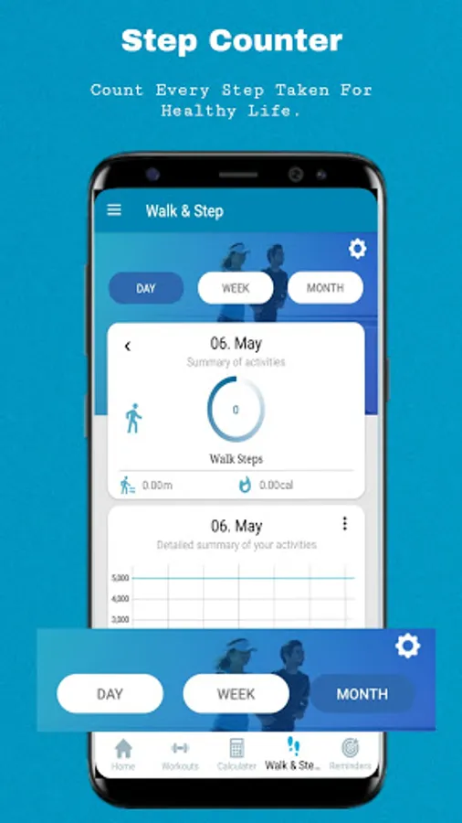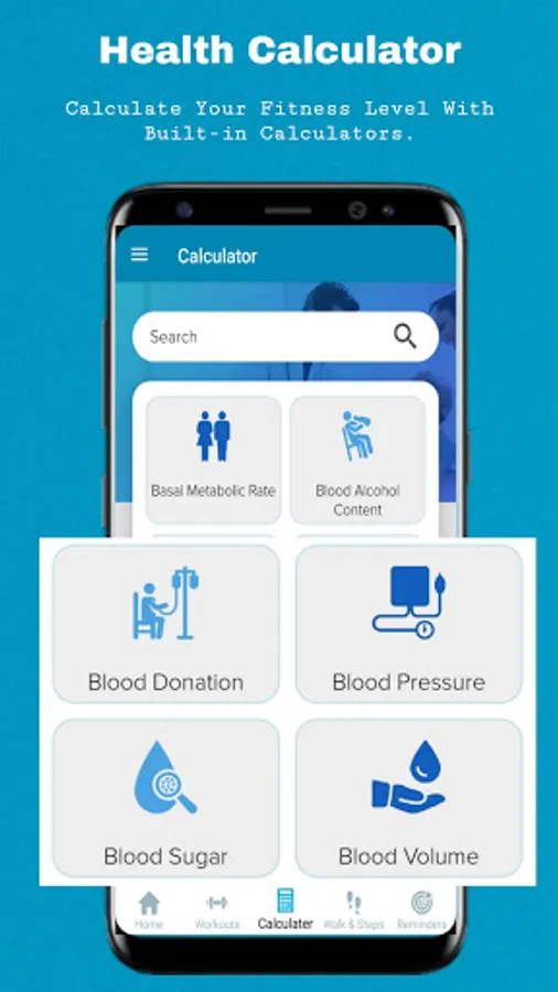 App provides several health and fitness calculator such as calorie calculator, tdee calculator, bmr calculator, step counter