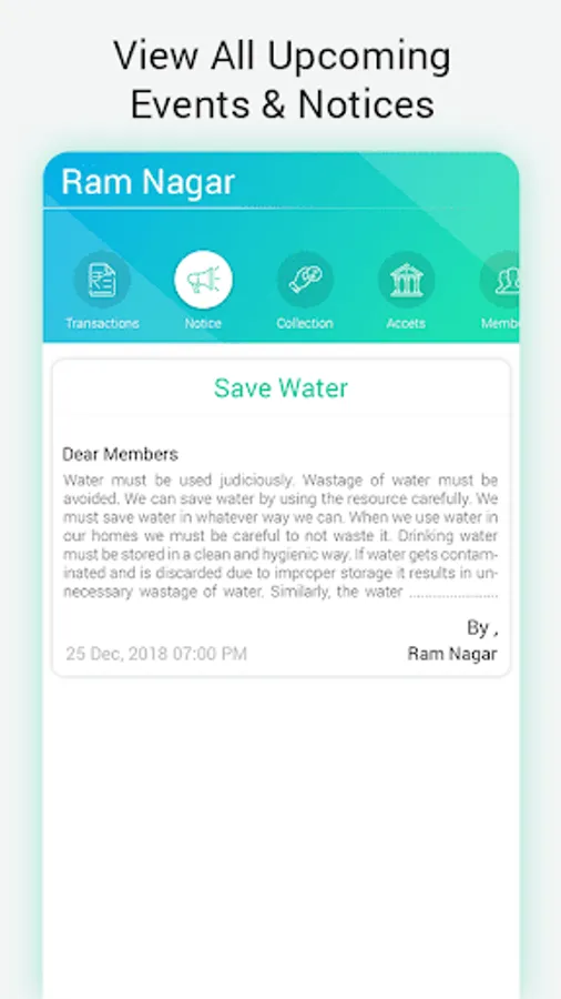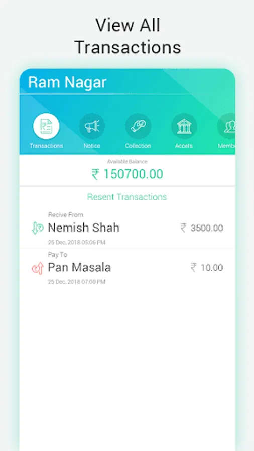 Manager can add inward and outward transaction this app any time and member will be a notify when any transaction happen in there society.
