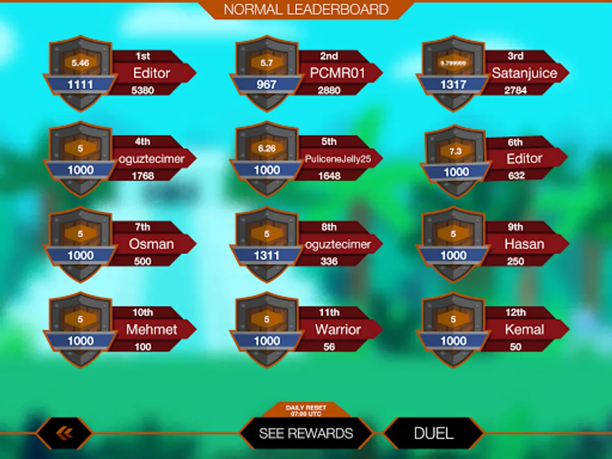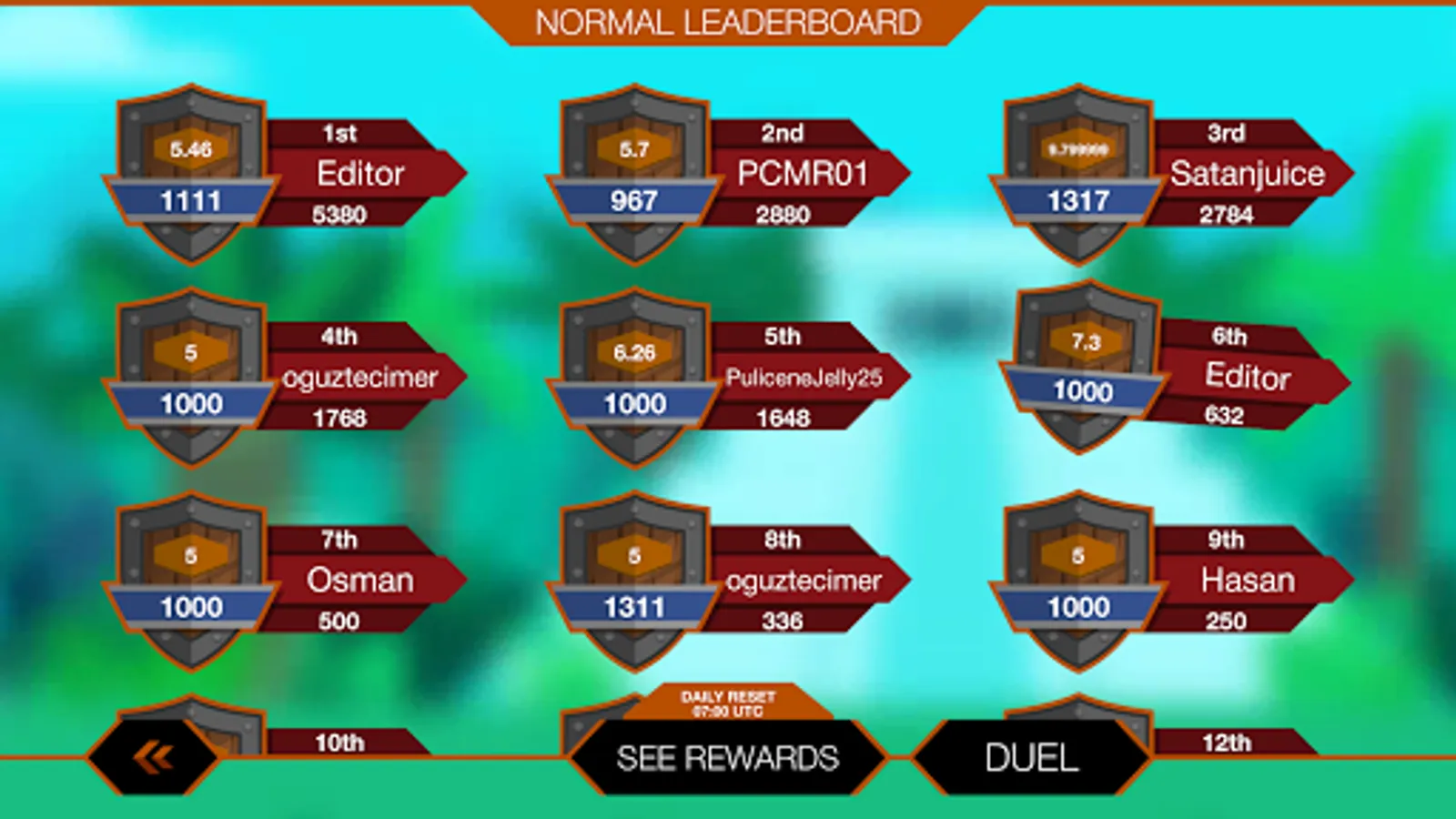 *Daily leaderboard reset each day, weekly leaderboard reset each week