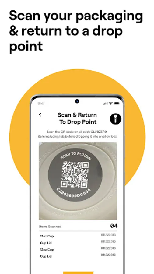 2. RETURN - Scan and return used packaging to any CLUBZERØ® drop point or organise a pick-up from your preferred address from the CLUBZERØ® app.