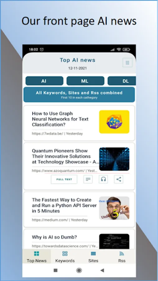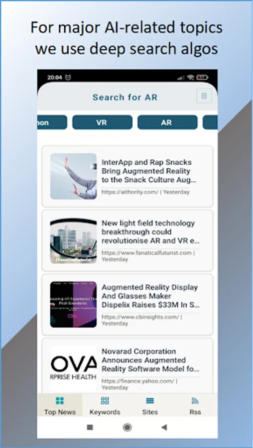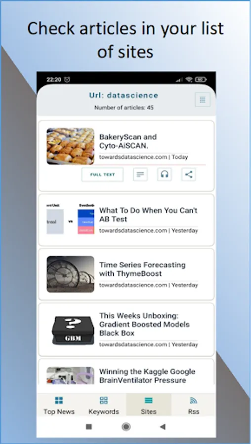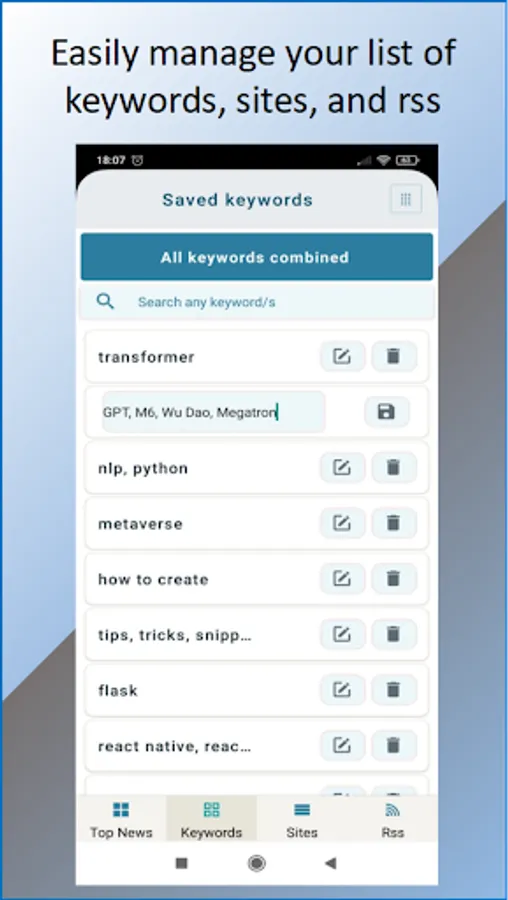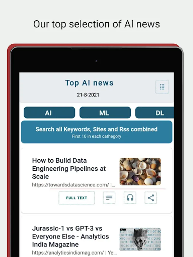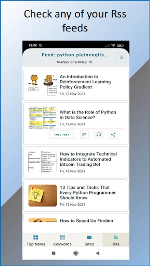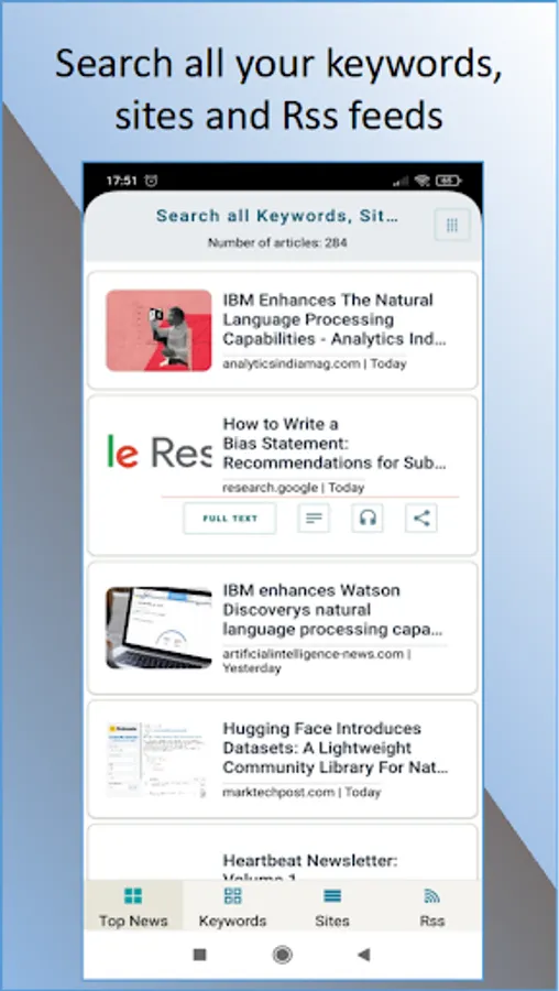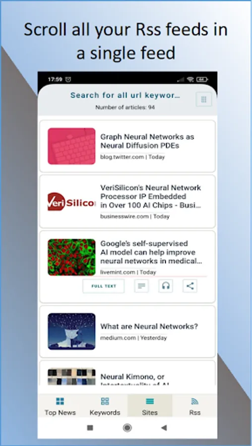App design is keyword-centric, so that topic-aware readers can enjoy a set of handy tools to access, build, and manage lists of keywords, sites, and news feeds. App users can explore a wealth of information from countless web sources in a couple of clicks or just check the news for the topics and keywords in their list. Content discovery is facilitated by news summaries, provided in text or text-to-speech formats.