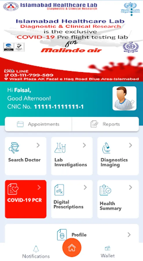 Lab Investigations: This enables to view, all the lab test reports along with booking, upcoming appointments with the facility of reschedule or cancel existing all type of lab test appointments having lab test at home is a revolution, Patients can now get their lab test done from the city’s renowned lab at their home as well as their workplace.