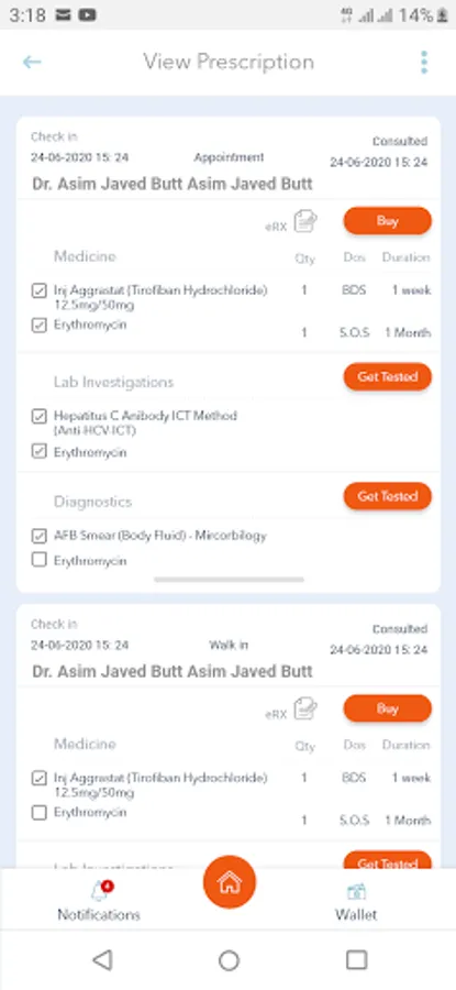 Lab Investigations: This enables to view, all the lab test reports along with booking, upcoming appointments with the facility of reschedule or cancel existing all type of lab test appointments having lab test at home is a revolution, Patients can now get their lab test done from the city’s renowned lab at their home as well as their workplace.