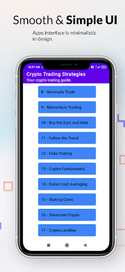 Some of the cryptocurrency trading strategies that we have added to this app are quite popular and comparatively easy. Such as doing Support and Resistance trade, Divergence Trading, Fading trade, Staking crypto, Dollar-cost averaging, Algo Trading, and so on.
