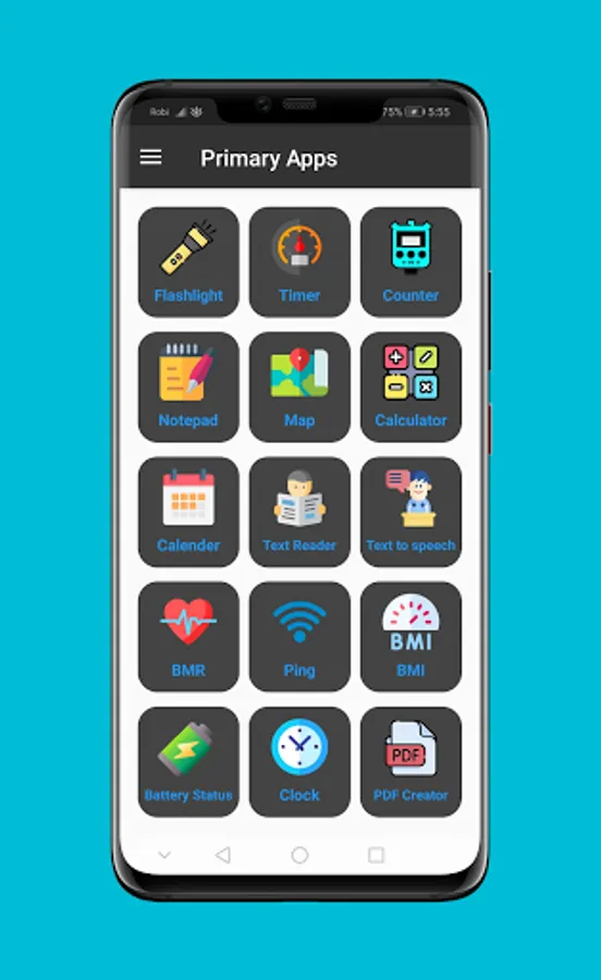 Primary Apps is a free all in one app. Primary Apps contains Flashlight, Timer, Counter, Notepad, Map, Calendar, Clock, Text to speech, and Calculator. You can access all these apps in one for free! Primary Apps is free available in all countries. Primary apps have all primary apps. Primary Apps is all in one free app. Day by day we try to update our app. Inshaallah.Primary Apps have these apps;