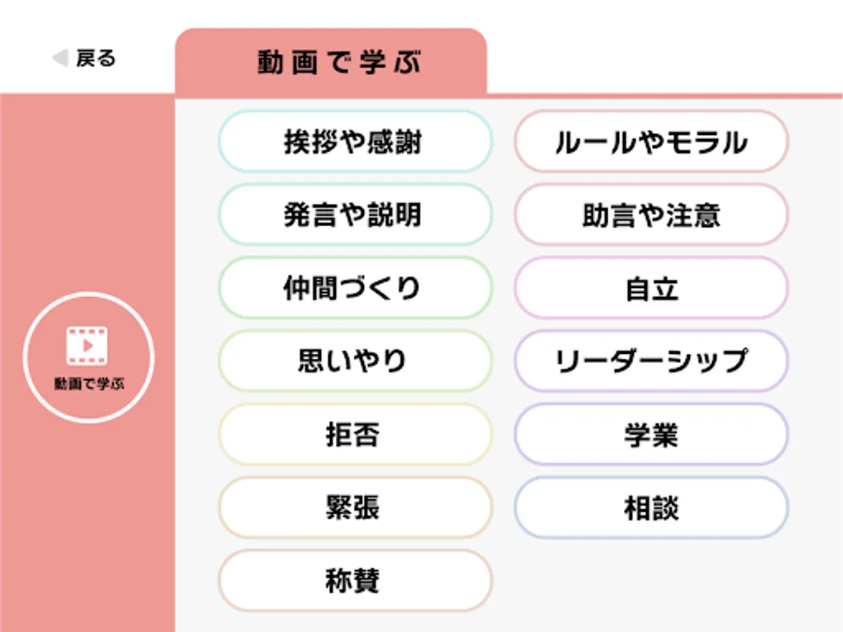 Through Q&A training consisting of 13 fields and viewing learning with short videos, learners can independently learn while having fun.