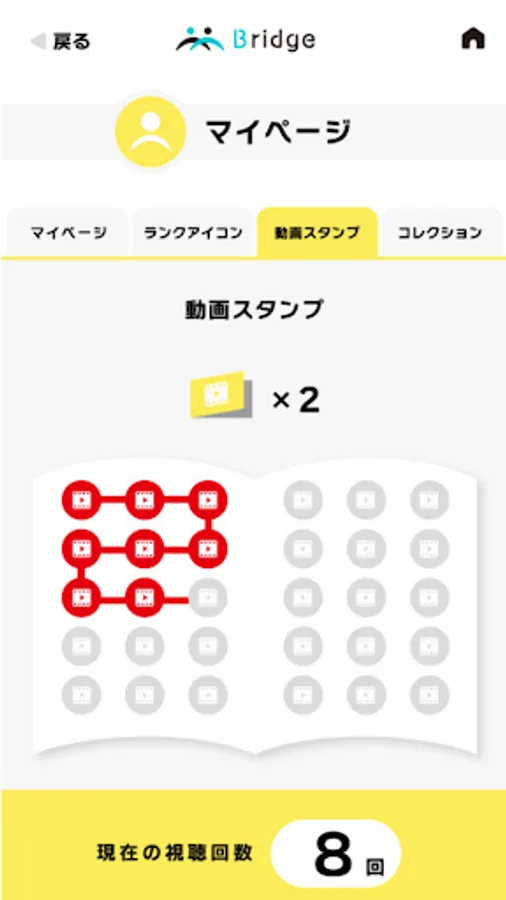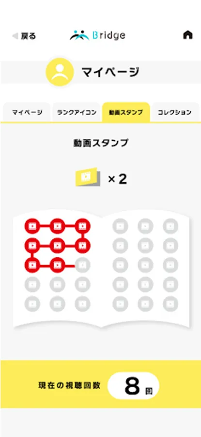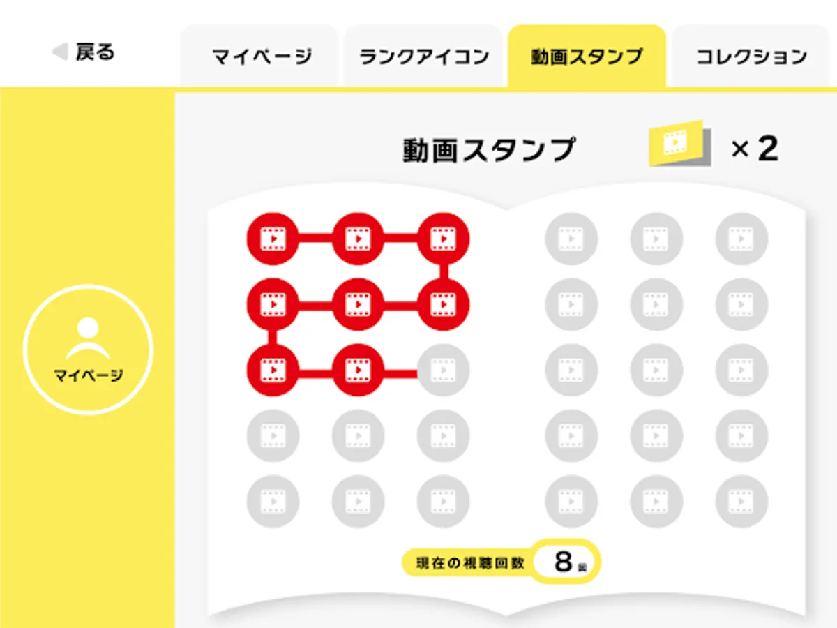 Points are added by watching videos, and points can be collected in a stamp rally style on My Page.