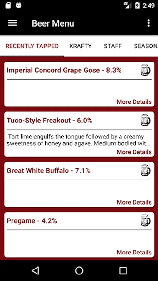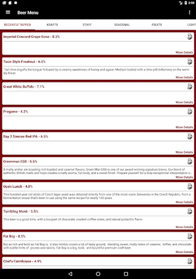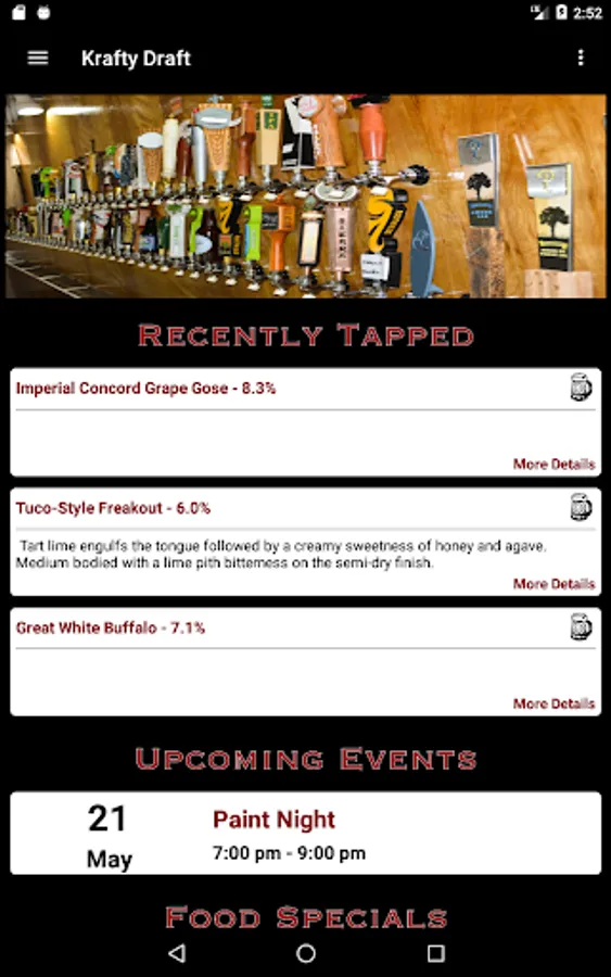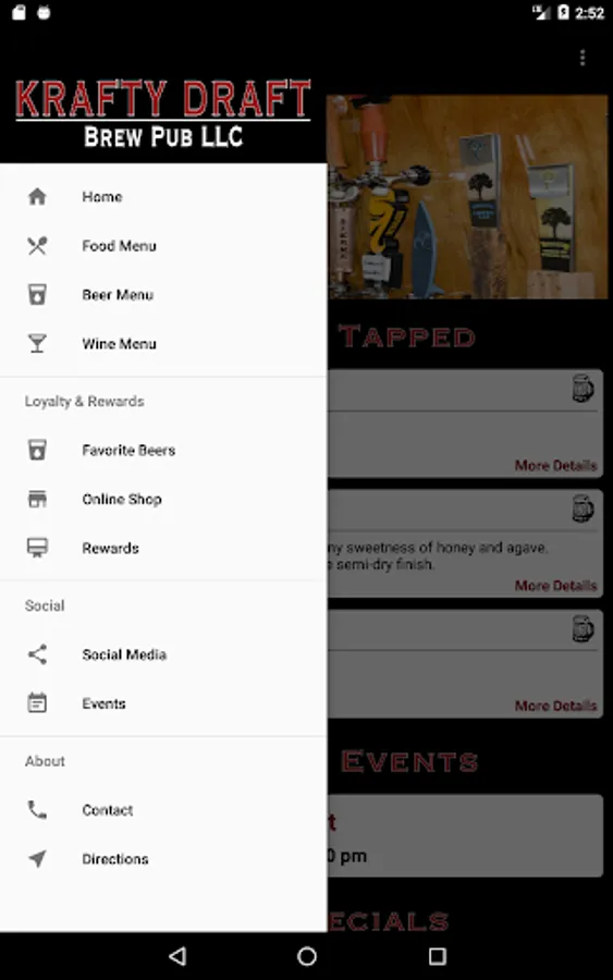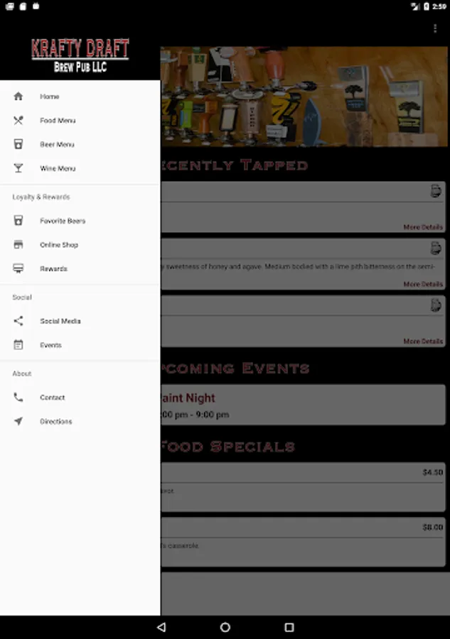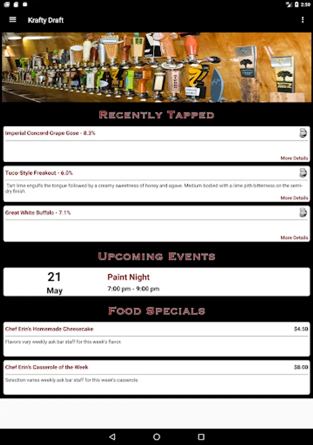 Come in and check out our great selections. Our taps rotate frequently, so check us out for the latest. We also have a distinctive selection of fine wines at reasonable prices and a great food menu offering pub style menu offerings. Our wine lovers have really been impressed and pleased with the selection. Beer or wine, whatever your passion, check us out.