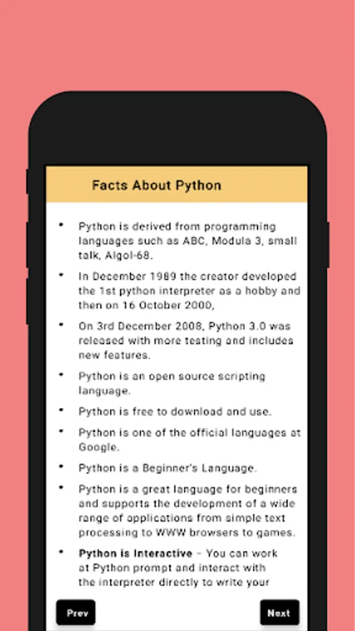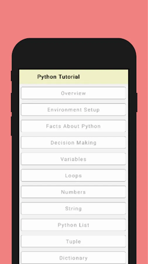 The tutorials in the application are divided into comprehensive sections for fast and easy learning. No prior programming experience is needed even a beginner can learn Python easily.