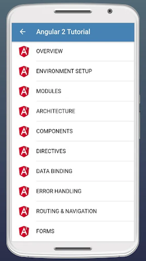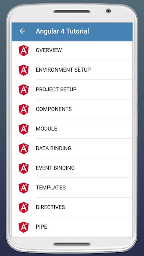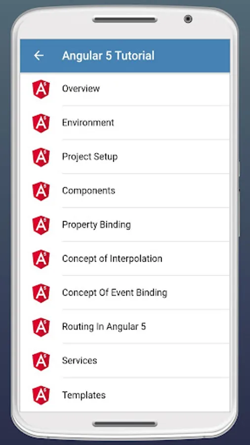 Angular Tutorial 5 is a complete application for those who want to learn Angular Js, Angular 2 & Angular 4 easily and Angular 5 free.This application provides tutorial for beginners as well as a working professional.Angular Tutorial 5 application provides good understanding to single page applications using Angular. This step-by-step guide is letting you know each and every aspect of Angular.