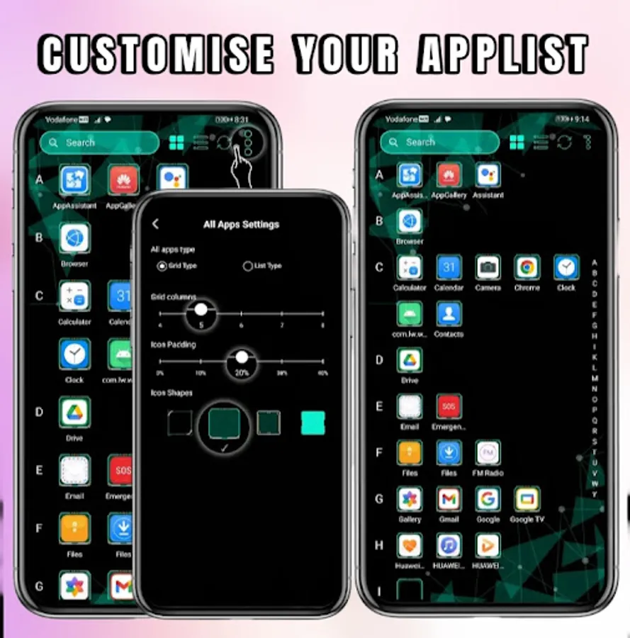 - **Organized Folders**: Cluster your apps effortlessly, with intuitive drag-and-drop folder creation.