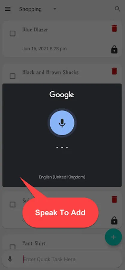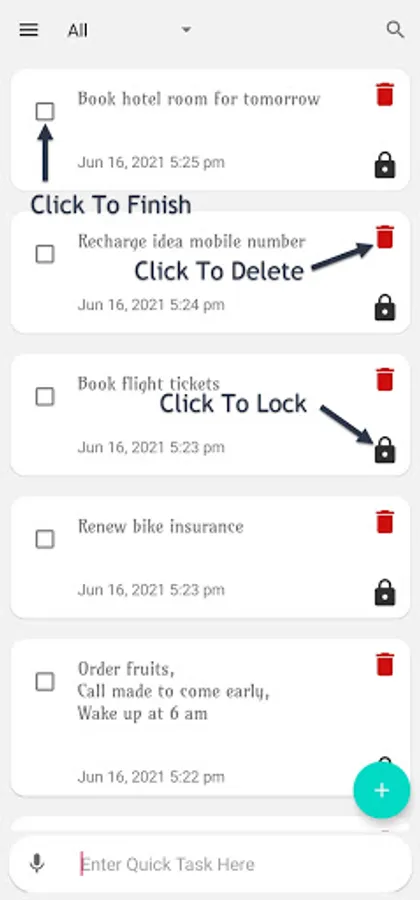 2.You don't need to write always, just simply press mic icon and say and the task will be stored.