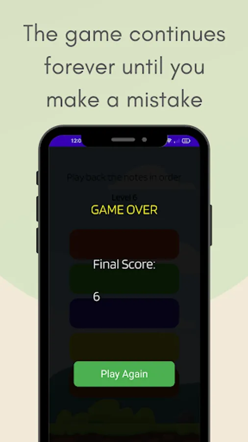 Simon Five is an easy to pick up game where you have to memorize the musical pattern that gets played to you. Play the notes back to progress to the next level where the pattern will gain an extra note.