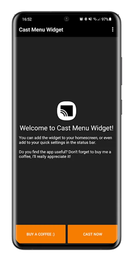 Cast Menu Widget is the easiest way to cast your device's screen to the TV or Chromecast, just add the app directly to your home screen, so you can open the menu to select the TV in a single touch!