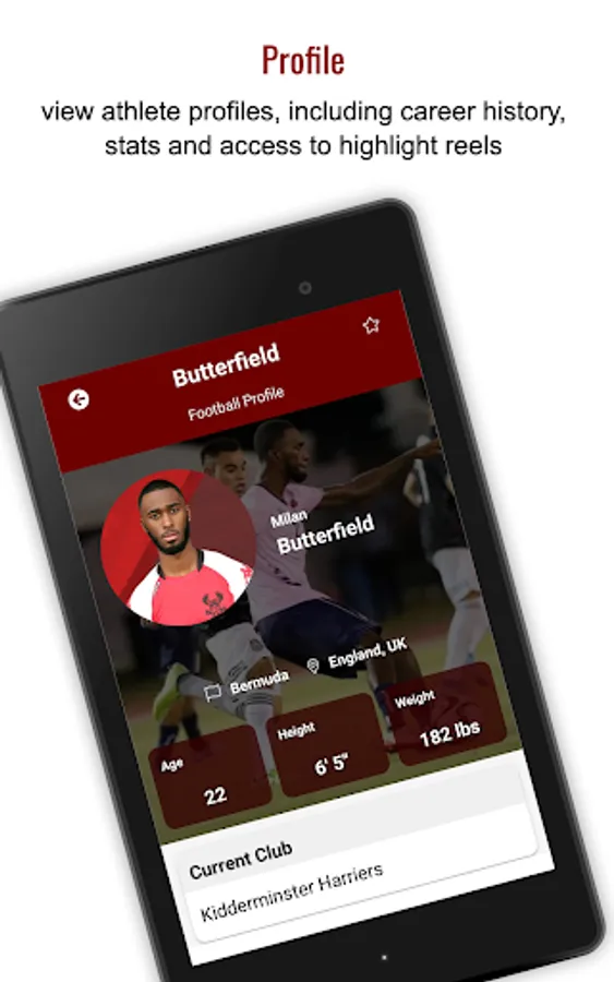 The app benefits the athlete by allowing their CV to be viewed worldwide, whether it be for viewing by boarding school coaches, college coaches, agents, scouts, semi pro, or pro clubs. Which will ultimately provide necessary exposure and create opportunities for our athletes.