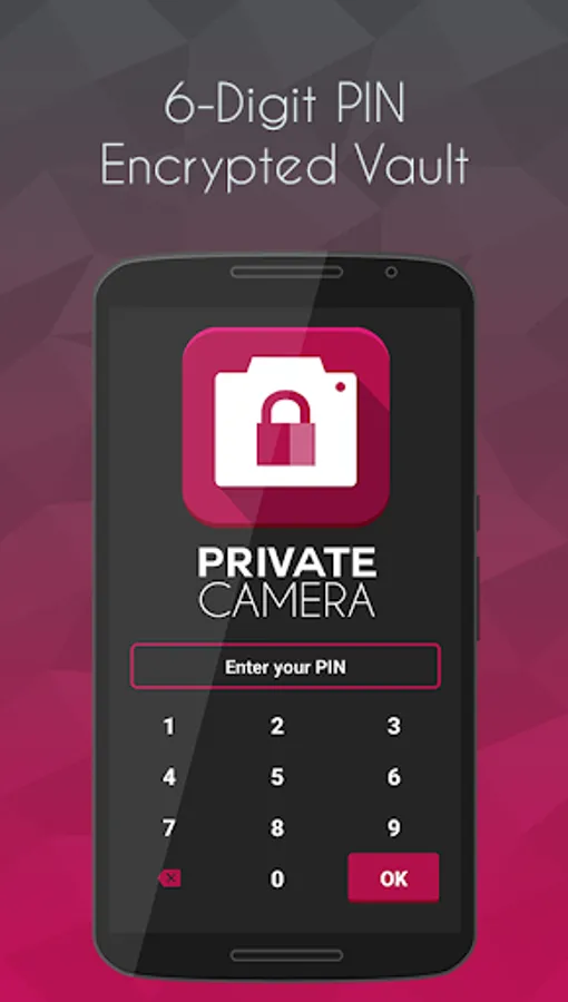 Vault - Encrypted photo vault with your choice of PIN. Setup a 6-digit PIN for your vault to keep your photos safe & secure.