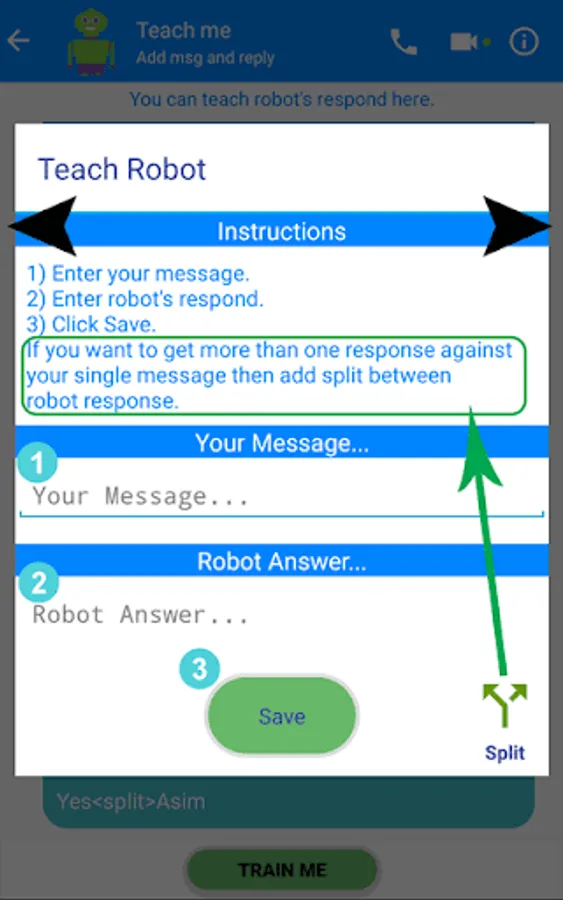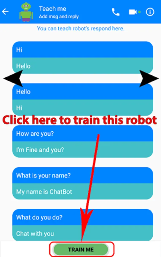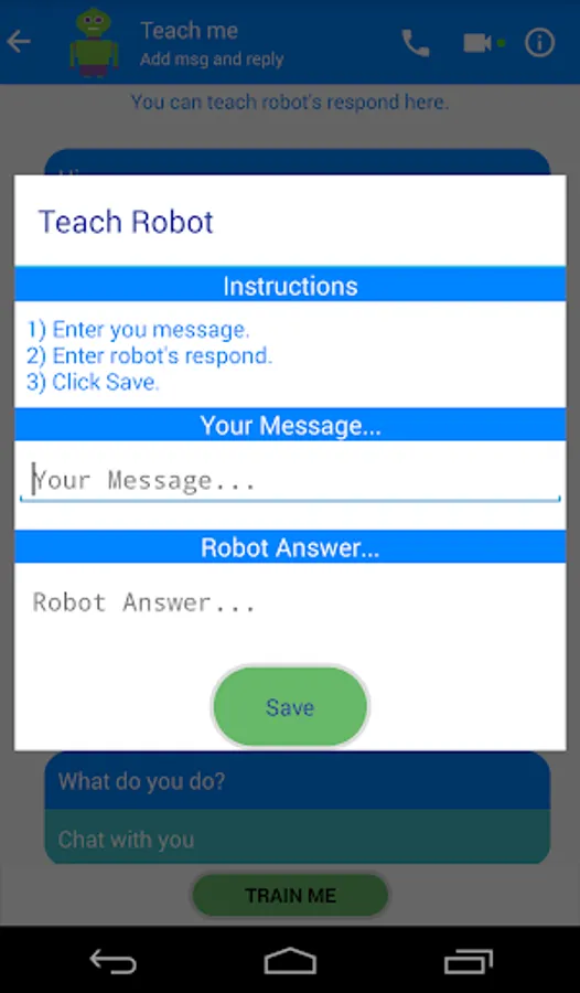 This robot can't respond to your messages without teaching him. You need to teach this chatbot. Once you taught him it will reply all your messages as you taught him.