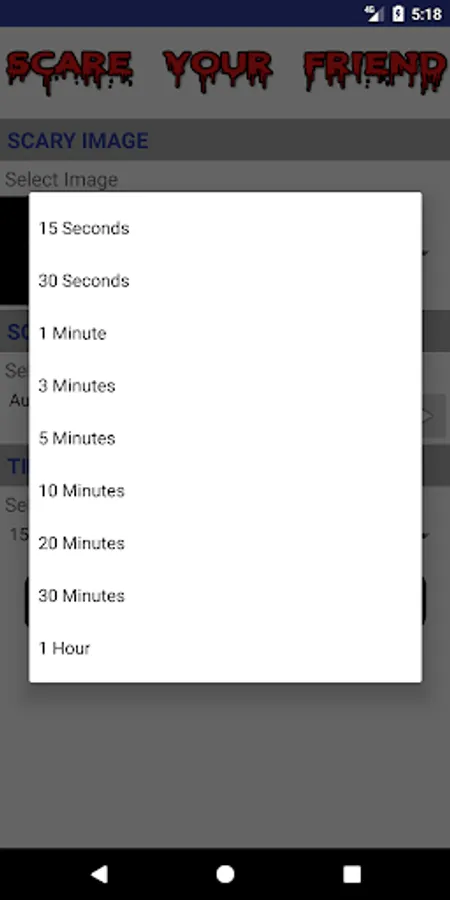 Now the app will be closed by pressing the button. Give your mobile to your friend and when your selected time comes, a Ghost will appear on your mobile screen with horrifying sound and your mobile start vibrating. I think it's enough for frightening your friends.