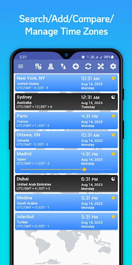 Here, is the process of adding this Different World time zones converter clock to your device which helps you in managing different time zones in time zones converter, compass helps in searching directions, so lets guide you how to use this time zone converter clock as follows:
