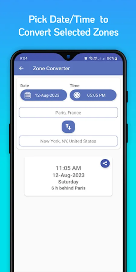 II. Edit/Convert and compare Time Zones to your desired time zone so drag seek bar thumb to compare Time Zones i.e. what is the time in New York when it is 9:00 AM in Paris?