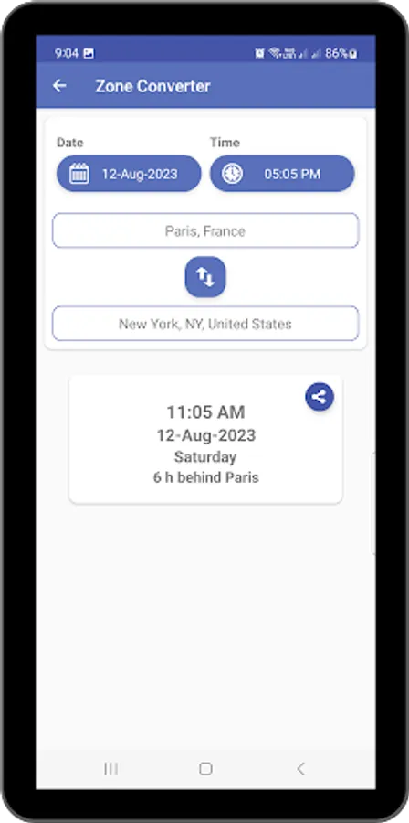 World time zones converter clock is a zone calculator, zone map app. Time Zone Converter help to search and add your desired time zones in the list. It also shows the relative time difference against each time zone regarding Eastern Standard Time, Greenwich Mean Time and Coordinated Universal Time which are commonly known as EST time, GMT time and UTC time respectively. So you can easily estimate GMT time, EST time now and UTC time now in the world. Time Zones Converter - World Clock Time Now App also have many useful tools and utilities such as Currency Converter to perform currency conversion of about 160 currencies, compass, speed meter, qibla direction and mileage calculator. Compass helps to search and find your direction and shows degrees from north. The speed meter is an awesome over speed checking tool. Speed meter show your current speed, average speed, maximum speed, time and distance traveled. Qibla direction helps you to find qibla direction from your location. Mileage calculator helps to calculate mileage, fuel consumption and distance travelled.