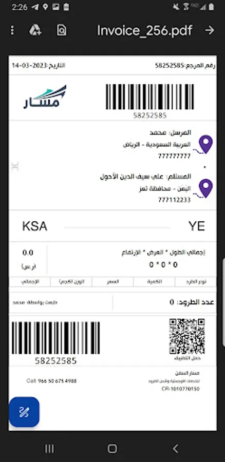 The Masar Cargo application allows all of its customers and agents throughout the Kingdom of Saudi Arabia and Yemen to receive their parcels with ease.
