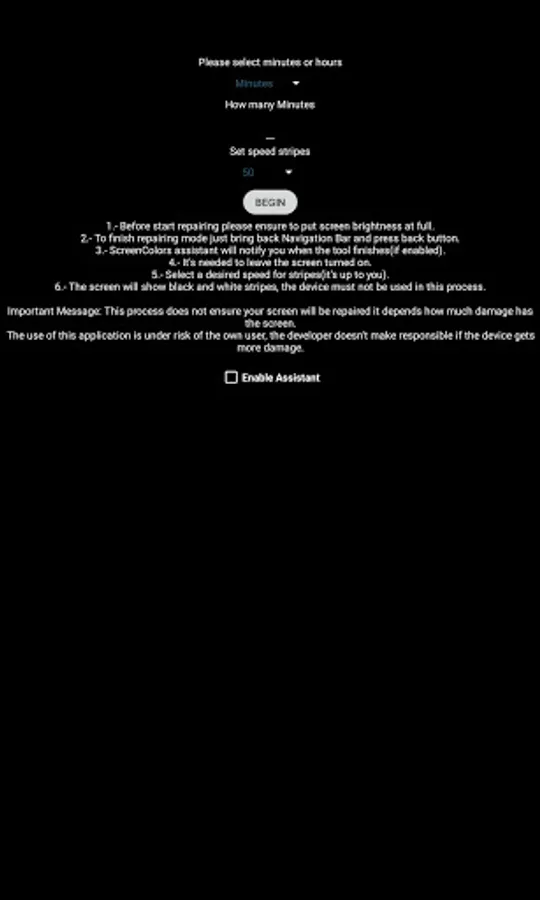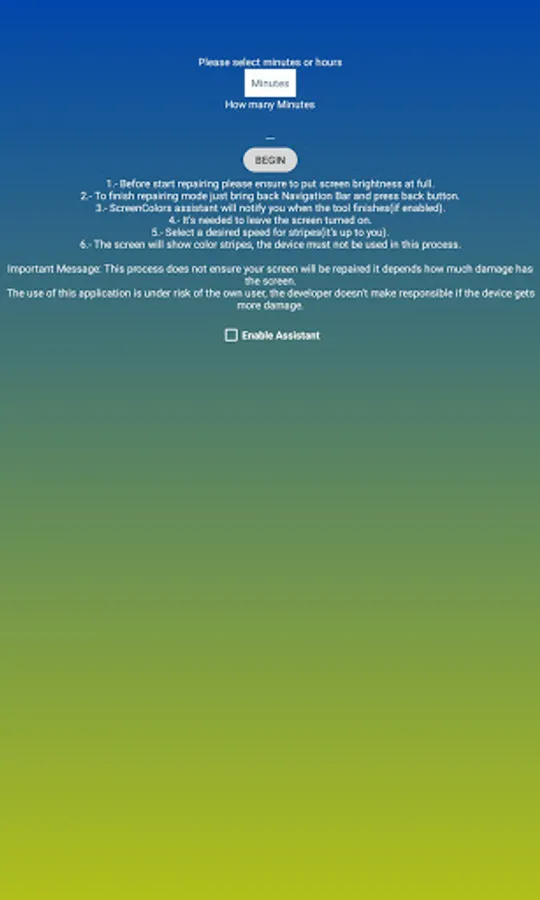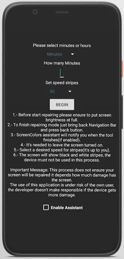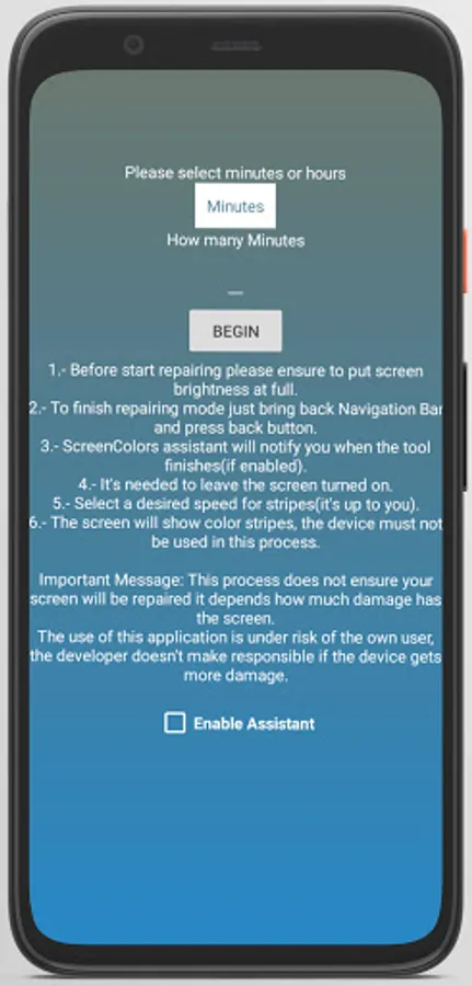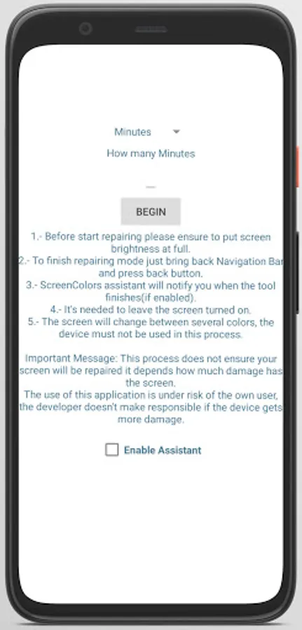 This basic app let you test basic colors in the screen phone and try to fix it from those burn marks like Keyboard, Notification Bar,Navigation Bar, Apps due of the daily use.