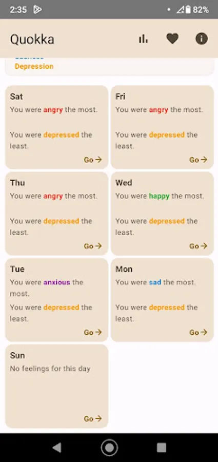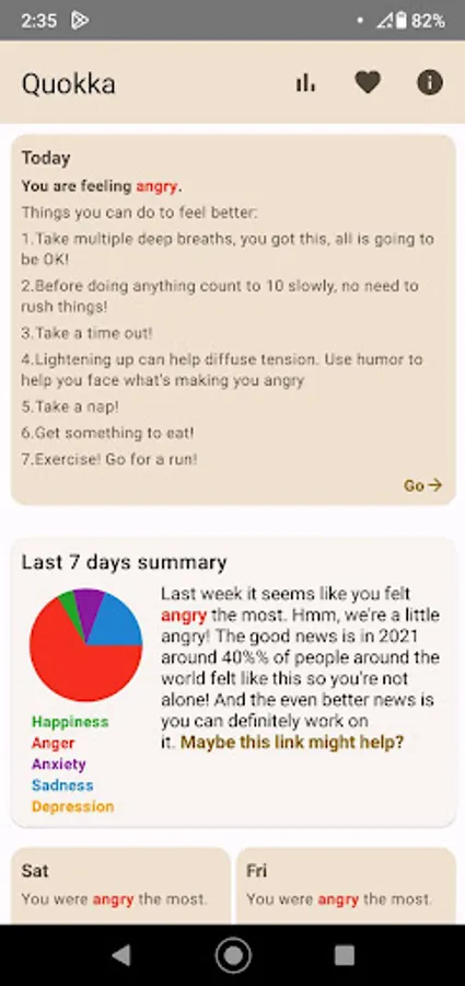 You can use Quokka to write and keep track of your feelings alongside their triggers, duration, etc; check your history and even get suggestions on what to do if you're not feeling good.