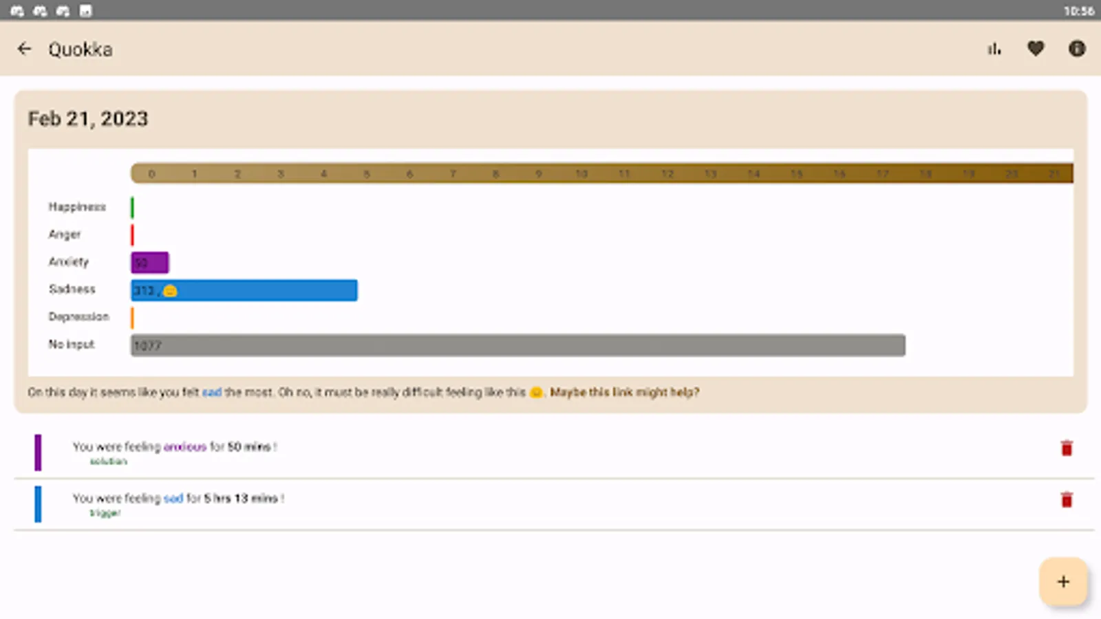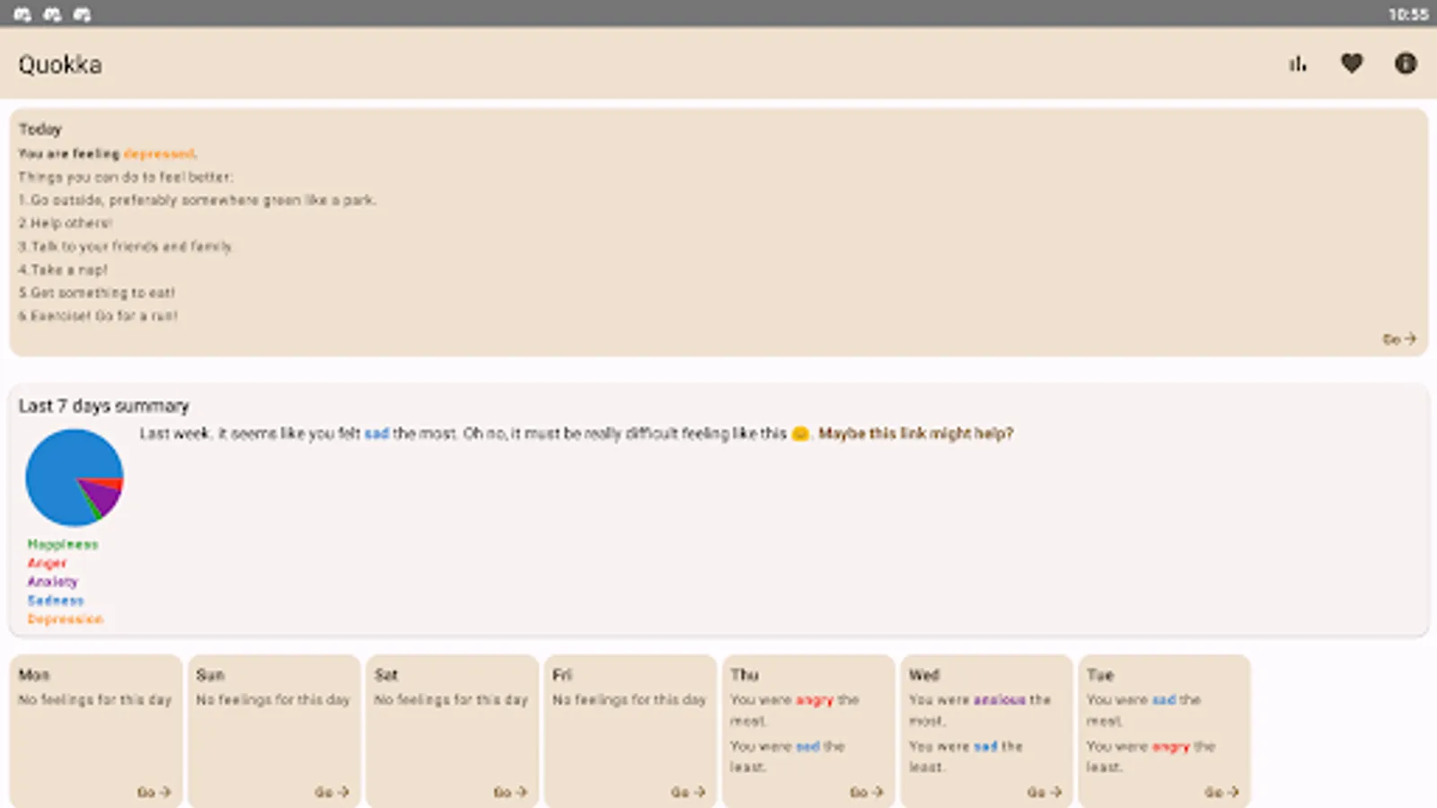 Quokka tries to help its users keep track of their feelings and offer suggestions in case they need them.