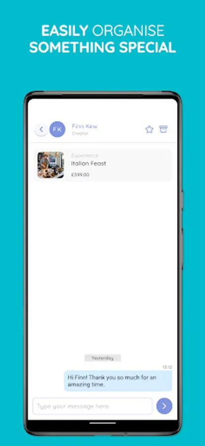 With our beautiful Anymoment Messaging area, you can talk to your Experience Creators directly and ask questions, work out any important details, make requests, or just say hello!