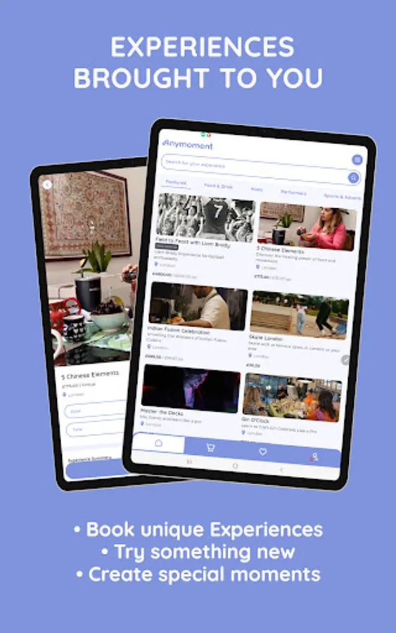The Anymoment app is the new way to discover, book, and enjoy incredible Experiences that come to you.