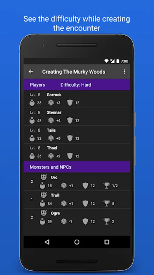 • Difficulty calculation is done automatically while creating encounters. Instantly get an idea of how challenging the encounter is going to be while creating it.
