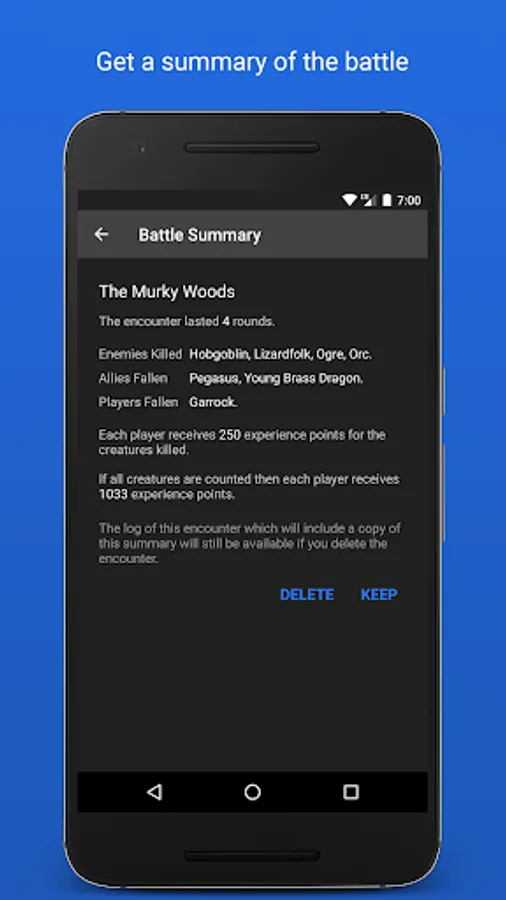 • Experience point distribution is calculated and shown on the summary screen when you end your encounter.