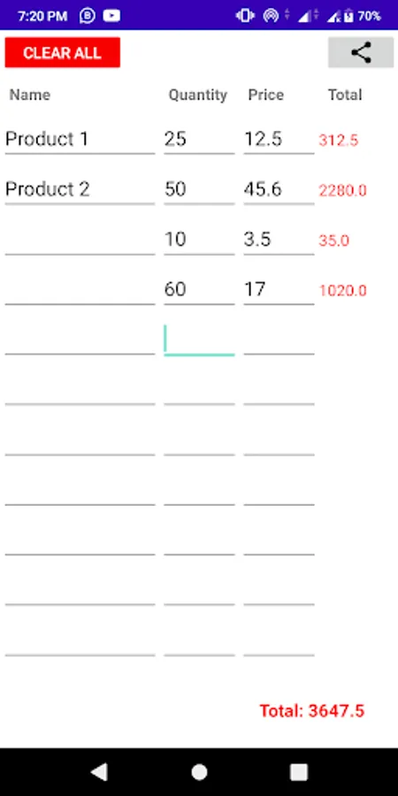 Say goodbye to manual calculations and complicated spreadsheets. Our advanced calculator functionality allows you to perform quick calculations on the go. Whether you're tallying up grocery expenses, splitting bills with friends, or tracking expenses for multiple items, our app has got you covered.