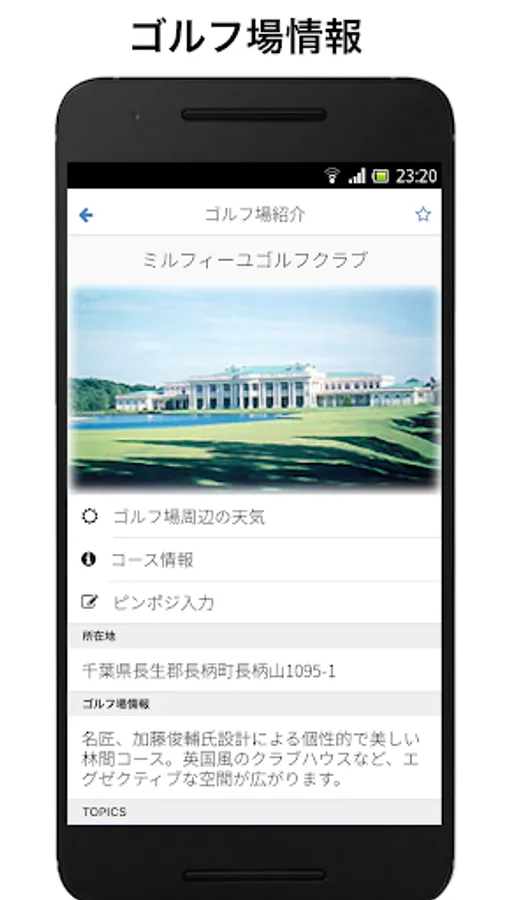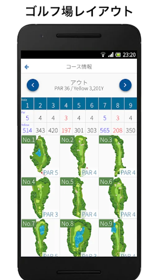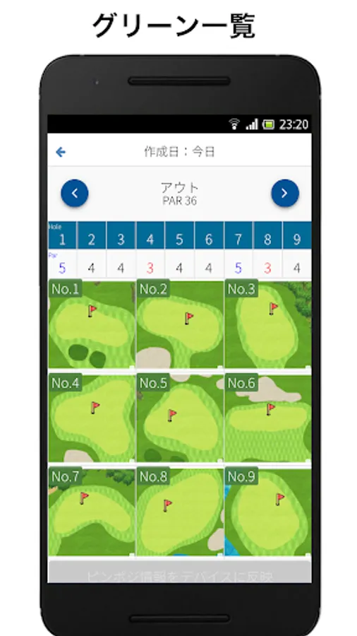 コースレイアウトの確認から、詳細のグリーン画像まで閲覧ができます。