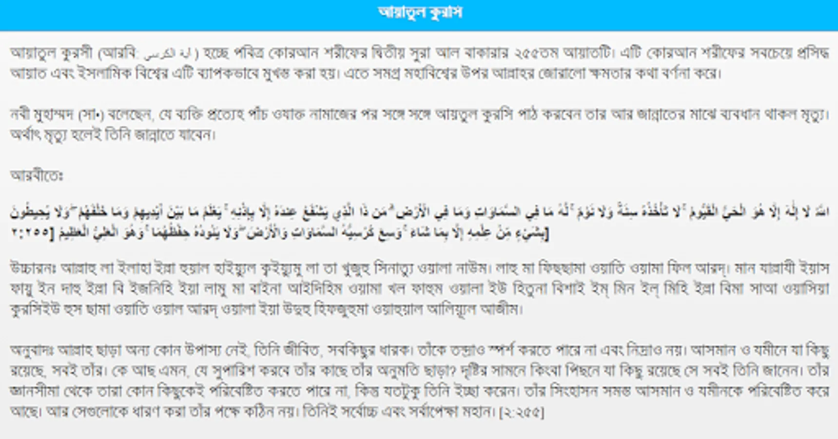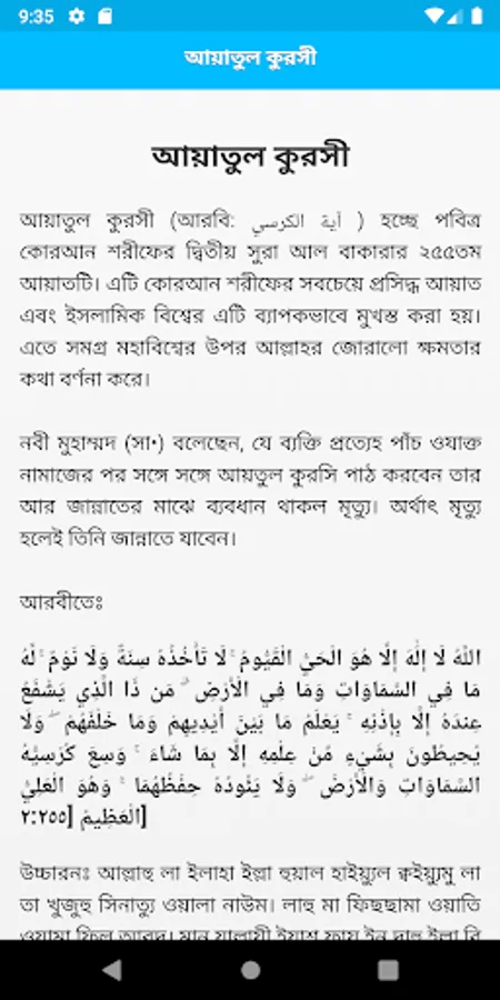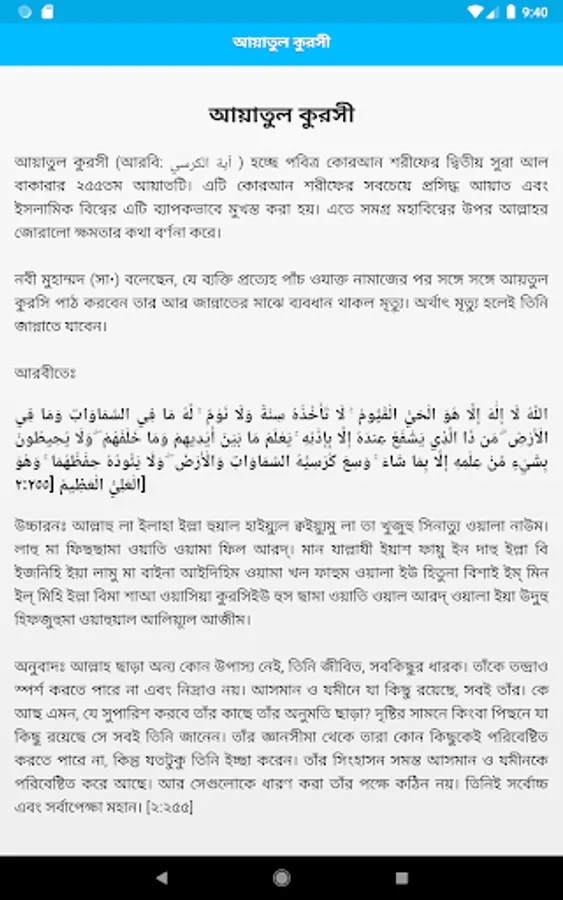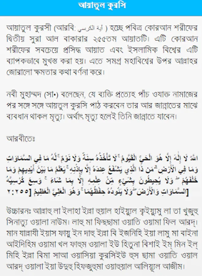 Ayatul Kursi in Bangla. You can read Ayatul Kursi in Bangla from this app.