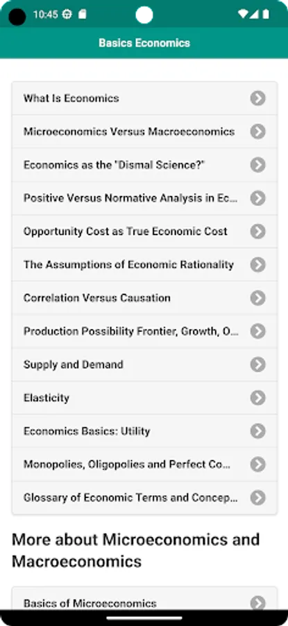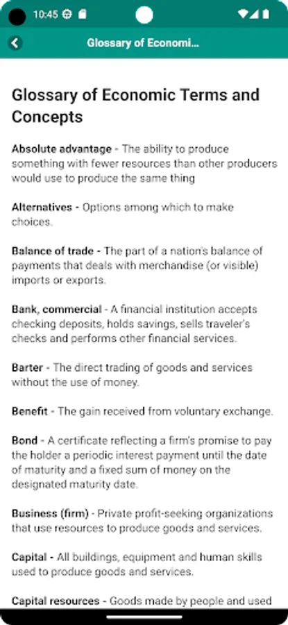 Economics concerned with the production, distribution, trade, and consumption of goods and services both individually and collectively. Two major types of economics are microeconomics and macroeconomics. Basic Economics is a handy app and nice app students who study Economics. This app contain essential information about Economics. It will work as pocket reference and help you to quick look the terms and definitions any time you want.