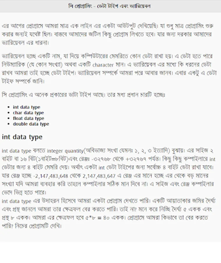 ডেটা টাইপ এবং ভ্যারিয়েবল