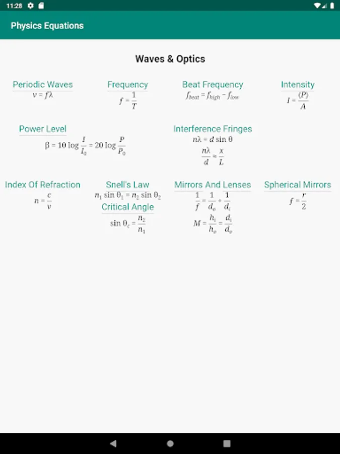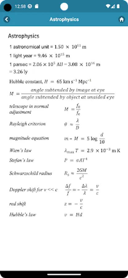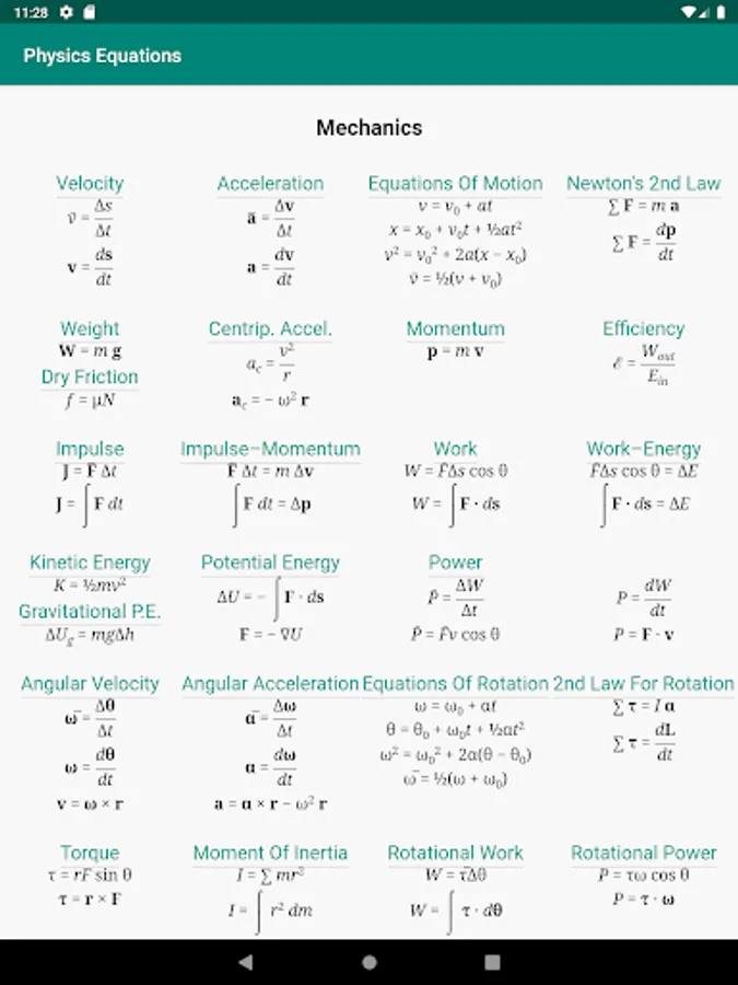 Physics is filled with equations and formulas with various fields. There are equations in every field to relate physical quantities to each other and perform calculations. From this app, you will get a list of important physics formulas and equations to keep on hand. These are arranged by topic: