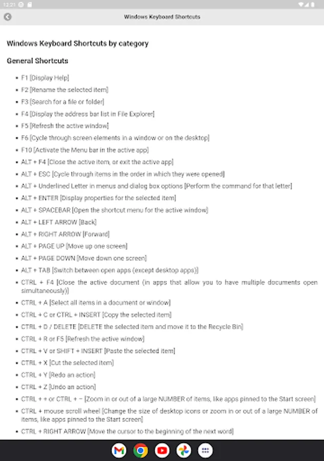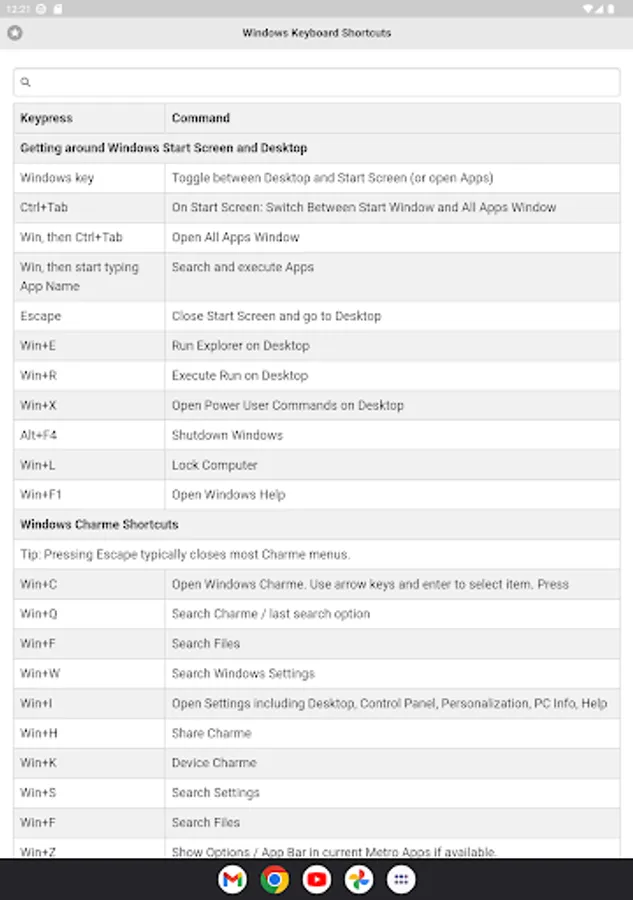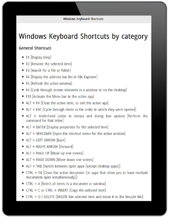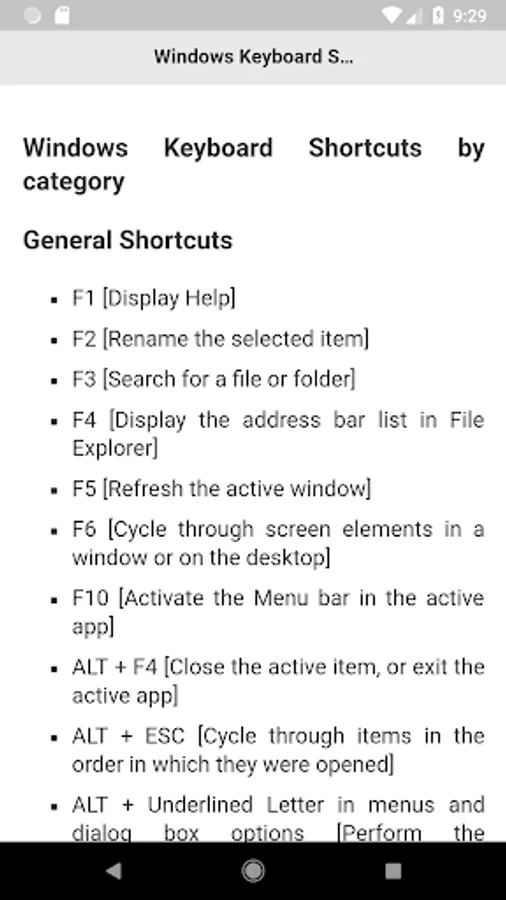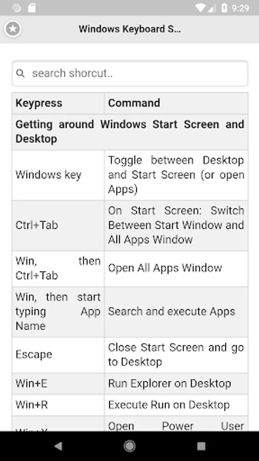 Keyboard Shortcut for Windows is a little app for read all keyboard shortcut for windows operating system. Keyboard shortcuts can boost your productivity if you are using Windows OS. You can search keyboard shortcut from this app. There are two way you can read. One is searchable, one is listed by categories. Categories are: