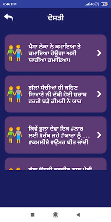 this application different Collection of Punjabi status and shayari like love shayari, romantic shayari, using this application you share via all social media.