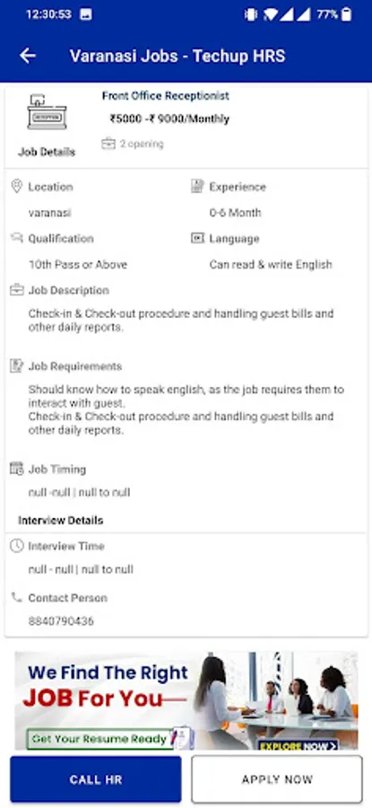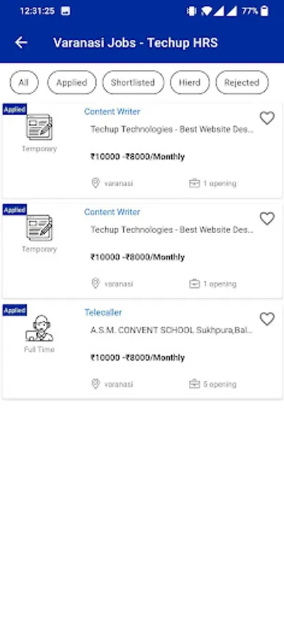 Varanasi Jobs - Techup HRS is a job application designed to connect job seekers with potential employers in the Varanasi region of India. The application is created and managed by Techup HRS, a human resource solutions provider with extensive experience in talent acquisition and management.