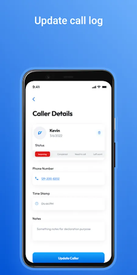 ● Tracking each call you receive with an active status, timestamp, and notes